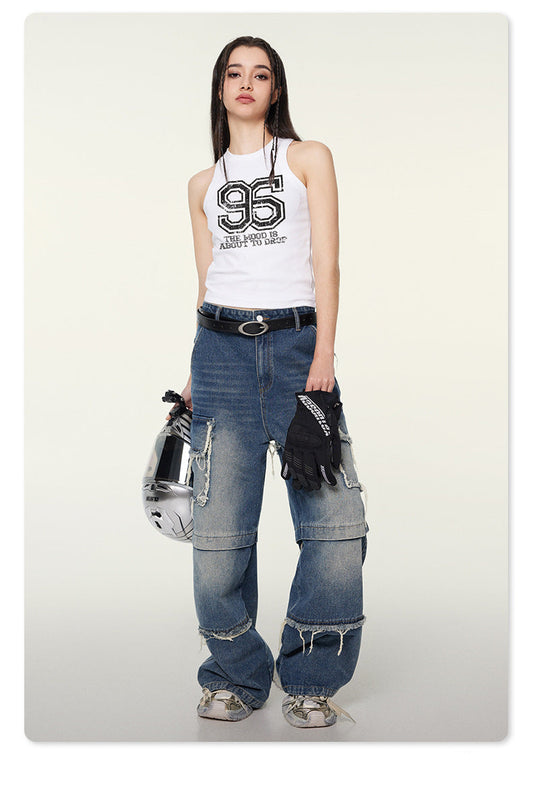 Wide-Leg Worn Pants