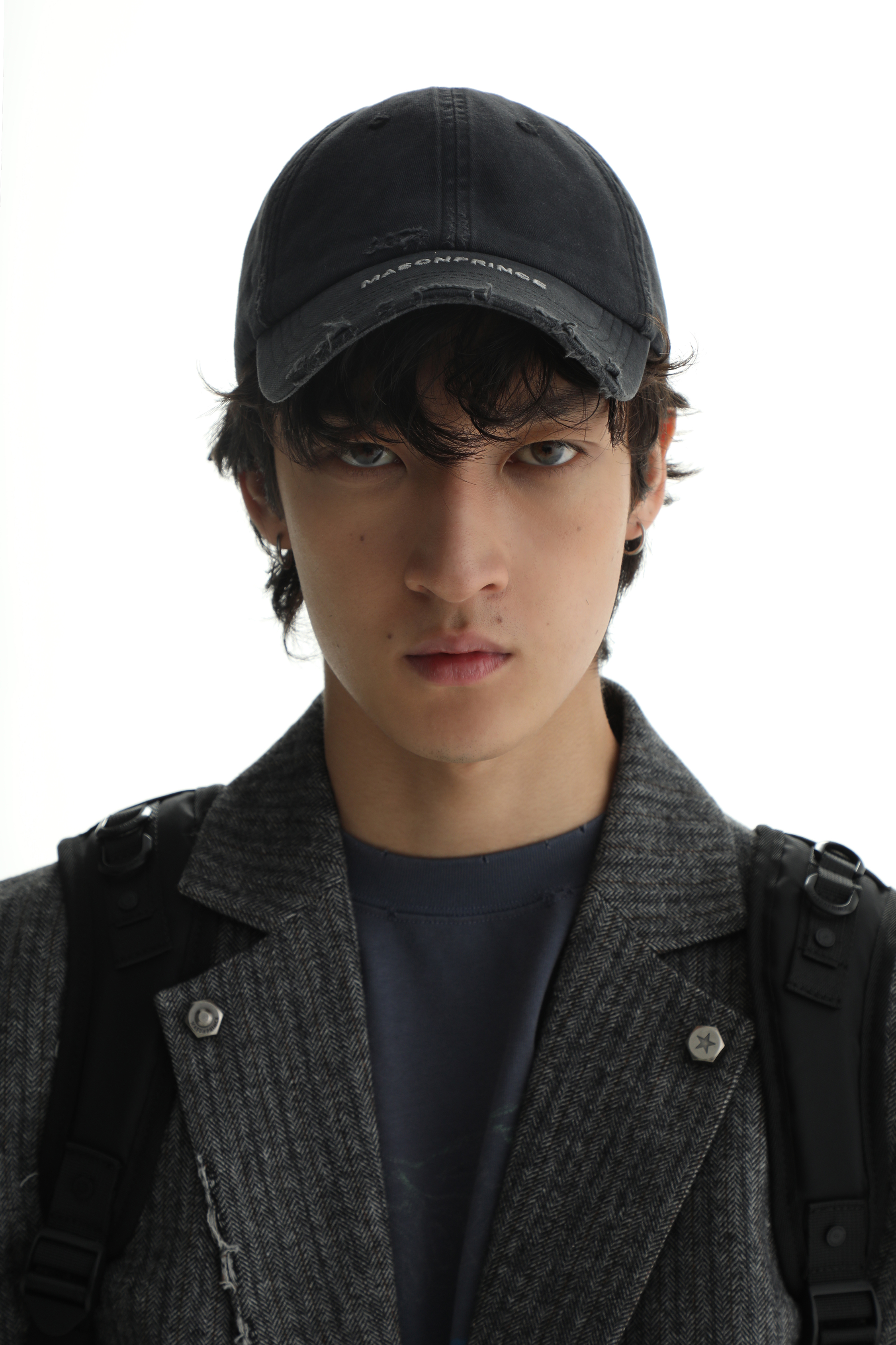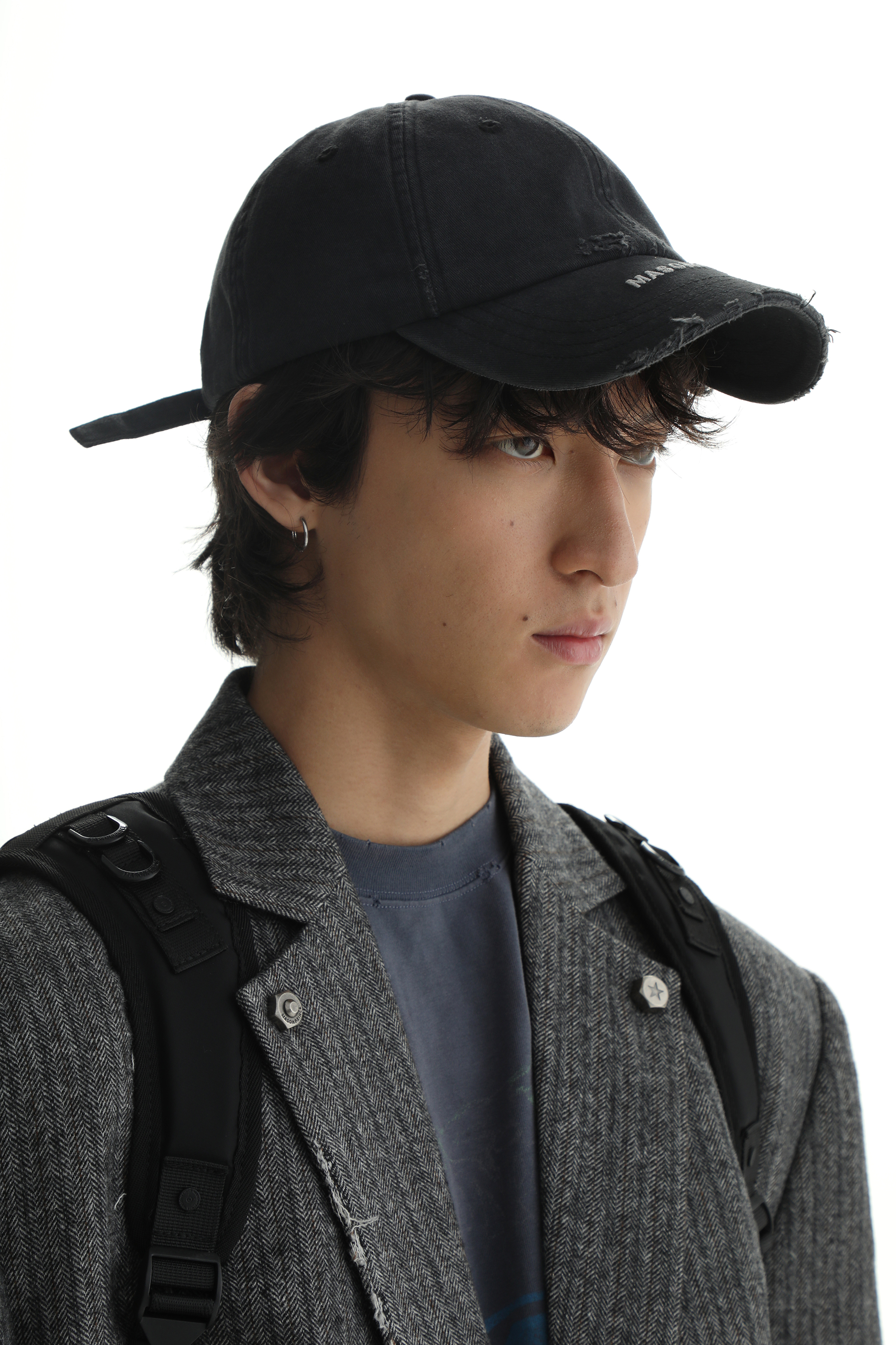This black baseball cap is crafted from durable organic cotton with a classic curved-brim design. It features an adjustable nylon buckle, front embroidered logo, and ventilated eyelets.